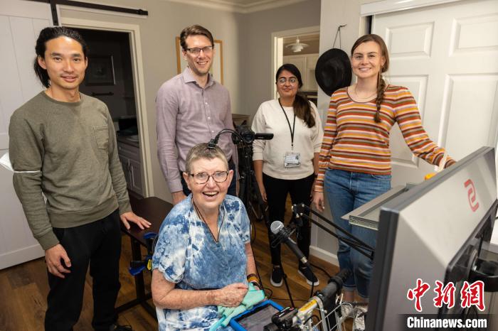 Willett研究小組與病人Pat在一起(攝影Steve Fisch)。施普林格·自然 供圖