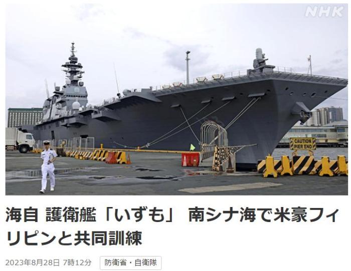 27日當(dāng)天,日本海上自衛(wèi)隊(duì)還邀請(qǐng)美、澳、菲的海軍指揮官在“出云”號(hào)上舉行典禮。據(jù)介紹,這是“出云”號(hào)首次??狂R尼拉。