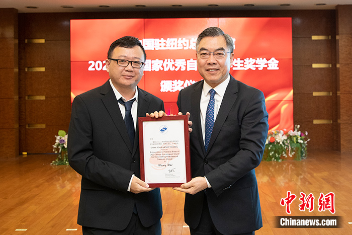 中新社紐約9月2日電 (記者 廖攀)中國(guó)駐紐約總領(lǐng)事館2日在紐約駐地舉行2022年度國(guó)家優(yōu)秀自費(fèi)留學(xué)生獎(jiǎng)學(xué)金頒獎(jiǎng)儀式,中國(guó)駐紐約總領(lǐng)事黃屏為獲獎(jiǎng)學(xué)生頒獎(jiǎng),負(fù)責(zé)教育事務(wù)的參贊余有根介紹紐約領(lǐng)區(qū)獲獎(jiǎng)情況。獲獎(jiǎng)學(xué)生、評(píng)審專(zhuān)家代表等近90人通過(guò)線上線下結(jié)合方式出席頒獎(jiǎng)儀式。