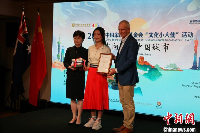 當(dāng)?shù)貢r(shí)間9月2日,悉尼中國(guó)文化中心與澳大利亞宋慶齡基金會(huì)共同舉辦的2023中國(guó)宋慶齡基金會(huì)“文化小大使”澳大利亞評(píng)選暨頒獎(jiǎng)活動(dòng)在悉尼成功舉辦。圖為王書(shū)羽(左)和保羅·弗萊徹(右)為金獎(jiǎng)獲得者頒獎(jiǎng)。中新社記者 顧時(shí)宏 攝