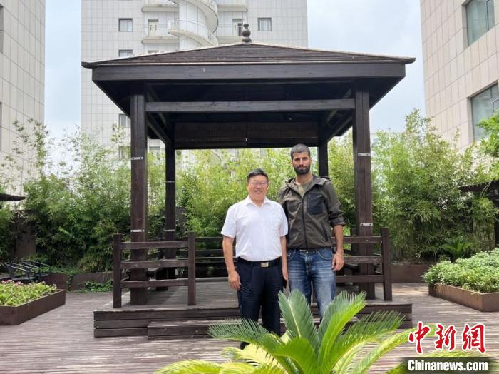 8月2日,在世界針灸學(xué)會(huì)聯(lián)合會(huì)(簡稱世界針聯(lián))北京總部,海德·阿拉維(右)向世界針聯(lián)主席劉保延介紹工作進(jìn)展。 (天津大學(xué)供圖)