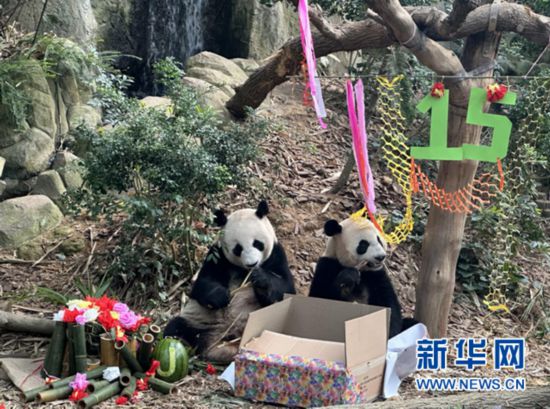 圖為旅居新加坡的大熊貓“嘉嘉”和在新加坡出生的大熊貓“叻叻”合影。(主辦方供圖)