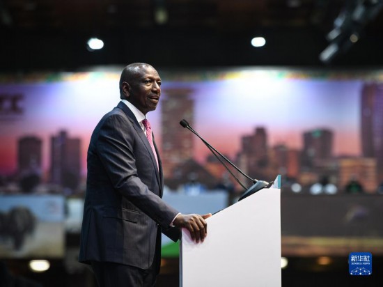 9月4日,肯尼亞總統(tǒng)魯托在內(nèi)羅畢舉行的首屆非洲氣候峰會(huì)開幕式上致辭。新華社記者韓旭攝