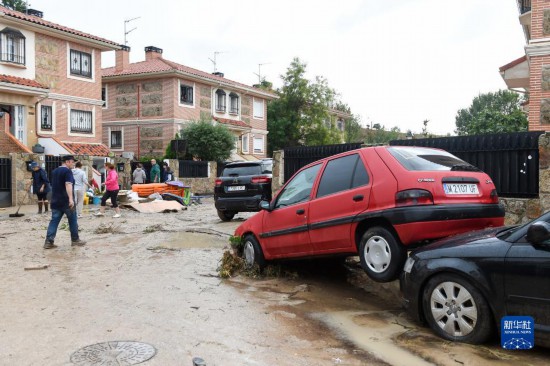 9月4日,居民在西班牙馬德里比利亞曼塔鎮(zhèn)清理淤泥。新華社發(fā)(古斯塔沃·巴連特攝)