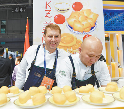 8月17日,在新疆烏魯木齊舉行的2023(中國(guó))亞歐商品貿(mào)易博覽會(huì)上,來(lái)自哈薩克斯坦的廚師制作該國(guó)美食。
