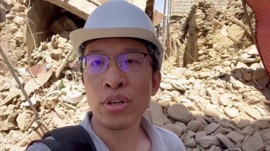 新華社記者霍晶奔赴震中附近的艾米茲米茲村,進(jìn)行現(xiàn)場報(bào)道。
