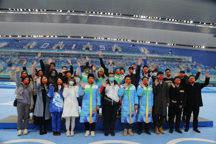 北京大學體育教研部臺籍教師陳文成組建的臺胞志愿者服務(wù)隊在北京冬奧會上合影。 本人供圖