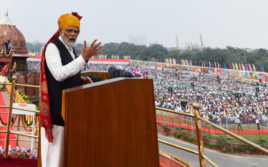 8月15日,印度總理莫迪在德里出席獨立日慶?;顒訒r發(fā)表講話。新華社發(fā)