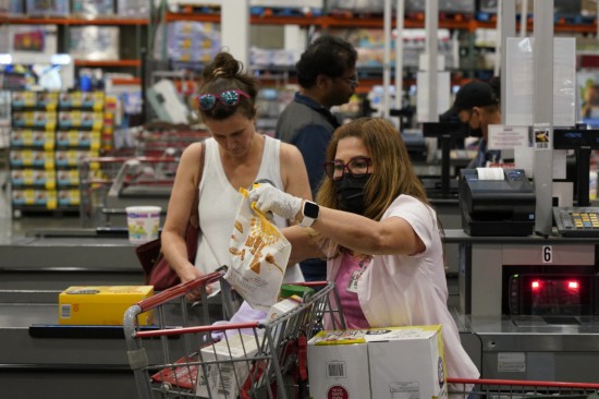 6月29日,顧客在美國舊金山灣區(qū)福斯特城一家超市購物。新華社記者吳曉凌攝