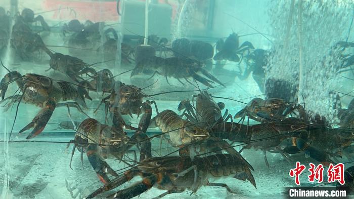 9月7日,記者來(lái)到位于新疆喀什麥蓋提縣的澳洲淡水龍蝦養(yǎng)殖基地,圖為養(yǎng)殖的澳洲淡水龍蝦。中新社記者 朱賀 攝