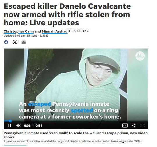 中新網(wǎng)9月13日電 綜合美媒報道,當(dāng)?shù)貢r間12日,美國賓夕法尼亞警方表示,在該州東南部發(fā)現(xiàn)了13天前越獄的殺人犯達(dá)內(nèi)洛·卡瓦爾坎特,他從一戶民宅獲取了一支步槍。目前警方已設(shè)立新的包圍圈逼近該逃犯。
