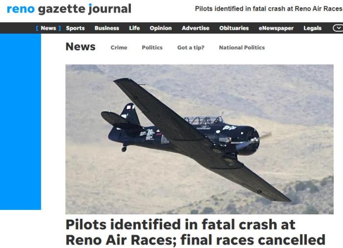 當(dāng)?shù)孛襟w雷諾公報(bào)(Reno Gazette-Journal)報(bào)道稱,遇難的飛行員分別為飛行員克里斯·拉辛和尼克·梅西。據(jù)介紹,拉辛是這次比賽的競賽冠軍,名列第一。梅西排名第二。兩名飛行員都來自加州。