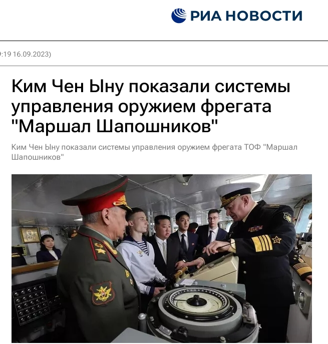 隨后,金正恩與紹伊古一行登上位于符拉迪沃斯托克的俄太平洋艦隊(duì)“沙波什尼科夫元帥”號(hào)護(hù)衛(wèi)艦,參觀了護(hù)衛(wèi)艦的導(dǎo)彈系統(tǒng)和火炮裝置。