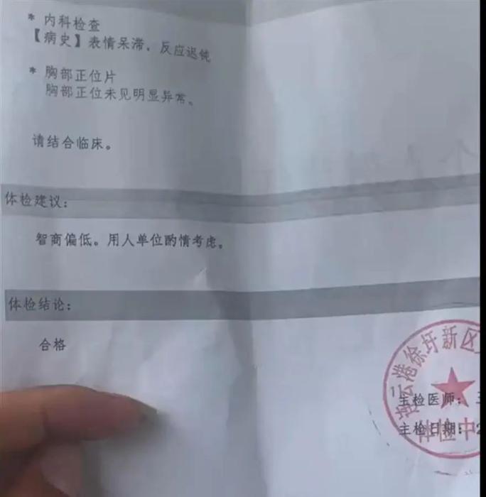 入職體檢報(bào)告上寫“智商偏低”