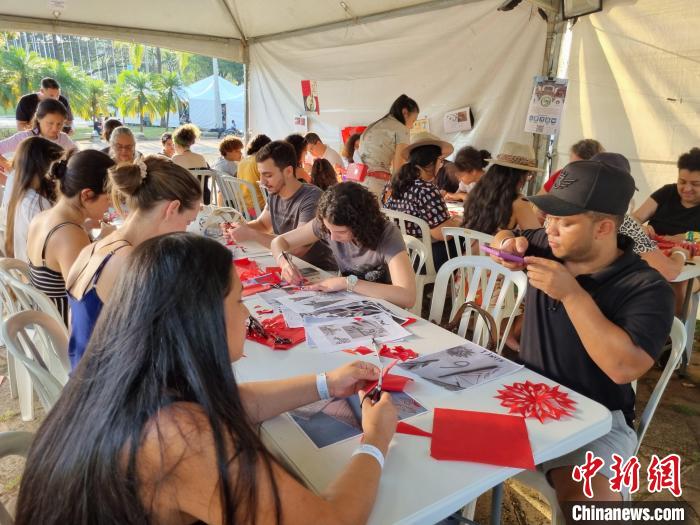 當(dāng)?shù)貢r(shí)間9月16日,坎皮納斯市民在當(dāng)?shù)仄咸蜒拦珗@體驗(yàn)中國(guó)剪紙、書法、制作燈籠等文化活動(dòng)。坎皮納斯大學(xué)孔院供圖