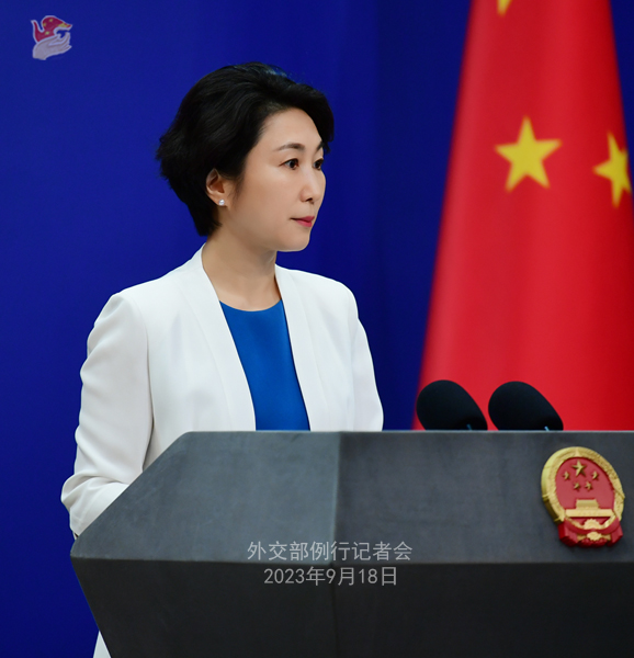 中新網(wǎng)北京9月18日電 (謝雁冰)中國外交部發(fā)言人毛寧9月18日主持例行記者會(huì)。