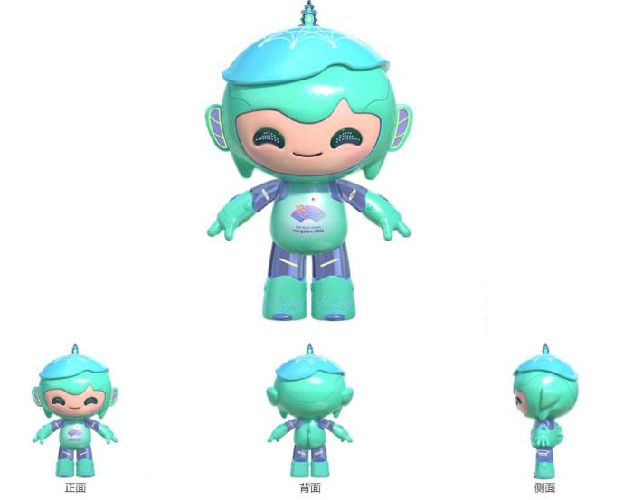 “宸宸”代表世界遺產(chǎn)京杭大運河。它全身以科技藍為主色調(diào),頭頂舉世罕見的錢江潮,額頭嵌以拱宸橋的圖案?!板峰贰睓C智勇敢、聰慧靈動、樂觀向上、積極進取,速度型項目和球類項目是它的最愛。