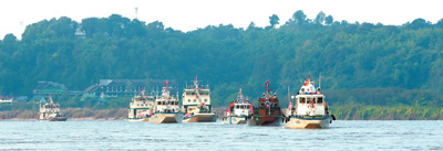瀾滄江—湄公河從中國(guó)關(guān)累到泰國(guó)清盛一段航運(yùn)最為繁忙,大量物資在中老緬泰四國(guó)間運(yùn)輸往來(lái)。裝滿貨物的各國(guó)商船在水面上來(lái)回穿梭,一片繁忙;兩岸村莊升起裊裊炊煙,一片祥和。長(zhǎng)期在湄公河上跑船的一名船長(zhǎng)說(shuō):“有聯(lián)合巡邏執(zhí)法編隊(duì)在,我們跑船很放心。感謝四國(guó)聯(lián)合巡邏執(zhí)法為湄公河帶來(lái)了安寧!”