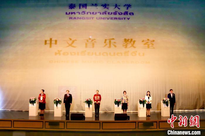 泰國蘭實大學(xué)與中外語言交流合作中心合作設(shè)立的泰國首家“中文音樂教室”19日舉行揭牌典禮。趙婧楠 攝