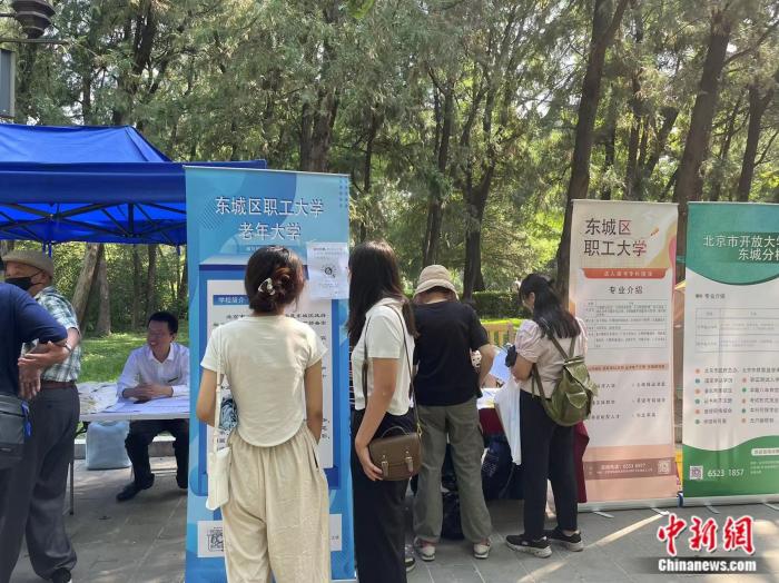 不久前,北京地壇書市里設置的東城區(qū)老年開放大學招生點位在社交媒體上意外出圈,許多年輕人慕名前去。