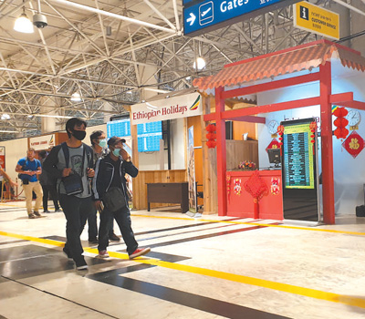 旅客經過埃塞俄比亞博萊國際機場內的中文服務臺。