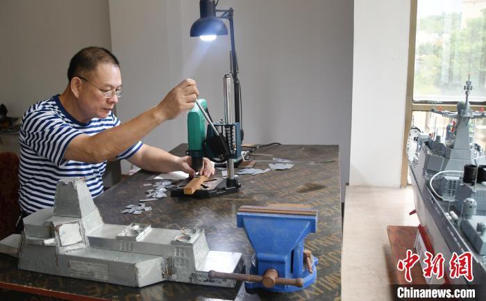 近40年的“造艦”生活,也讓潘雄體會到許多不易和堅(jiān)守?!白瞿P偷募夹g(shù)對于建筑出身的我來說不是難題,對艦船的愛好和制作模型的耐心才是最重要的?!迸诵鄯Q,自己剛開始制作“昆明號”驅(qū)逐艦時并無多少資料可查,每天下班吃完飯后就在工作臺上研究艦炮、桅桿、艦島的整合安裝和細(xì)節(jié)對接,經(jīng)常做著做著就到了凌晨。