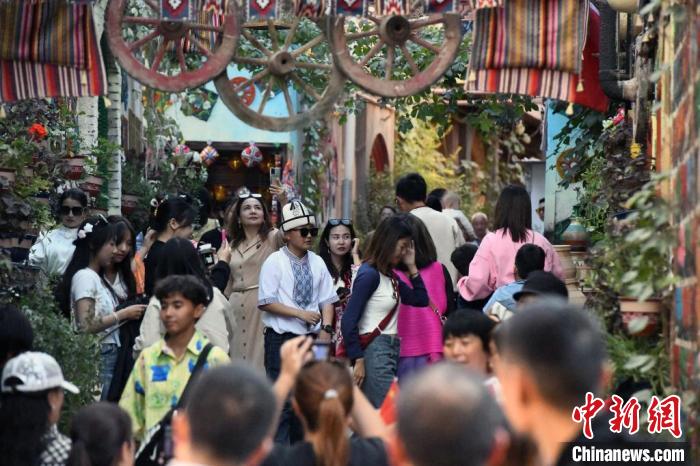 雙節(jié)期間,喀什作為新疆重要旅游目的地之一,迎來旅游高峰。10月1日,中新網(wǎng)記者來到喀什古城景區(qū),看到熙熙攘攘的游客們漫步在縱橫交錯的巷道里,時不時駐足停留。10時,在古城東門,觀看開城儀式的游客紛紛拿出手機打卡??κ补懦蔷皡^(qū)管委會對外宣傳科科長阿地力江·阿不都卡德爾說,今年喀什旅游非?;馃?,很多游客慕名而來,品嘗當(dāng)?shù)孛朗?,感受民族風(fēng)情,帶動了喀什古城景區(qū)的整體經(jīng)濟發(fā)展。