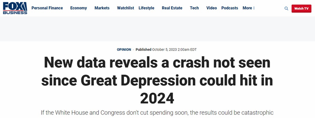 報(bào)道中寫道,越來越多的數(shù)據(jù)表明,一場破壞性超過大蕭條的經(jīng)濟(jì)崩盤可能即將在2024年降臨美國。白宮和國會(huì)如果不盡快削減政府支出,結(jié)果可能是災(zāi)難性的。
