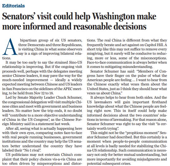原文標題:Senators’ visit could help Washington make more informed and reasonable decisions: China Daily editorial