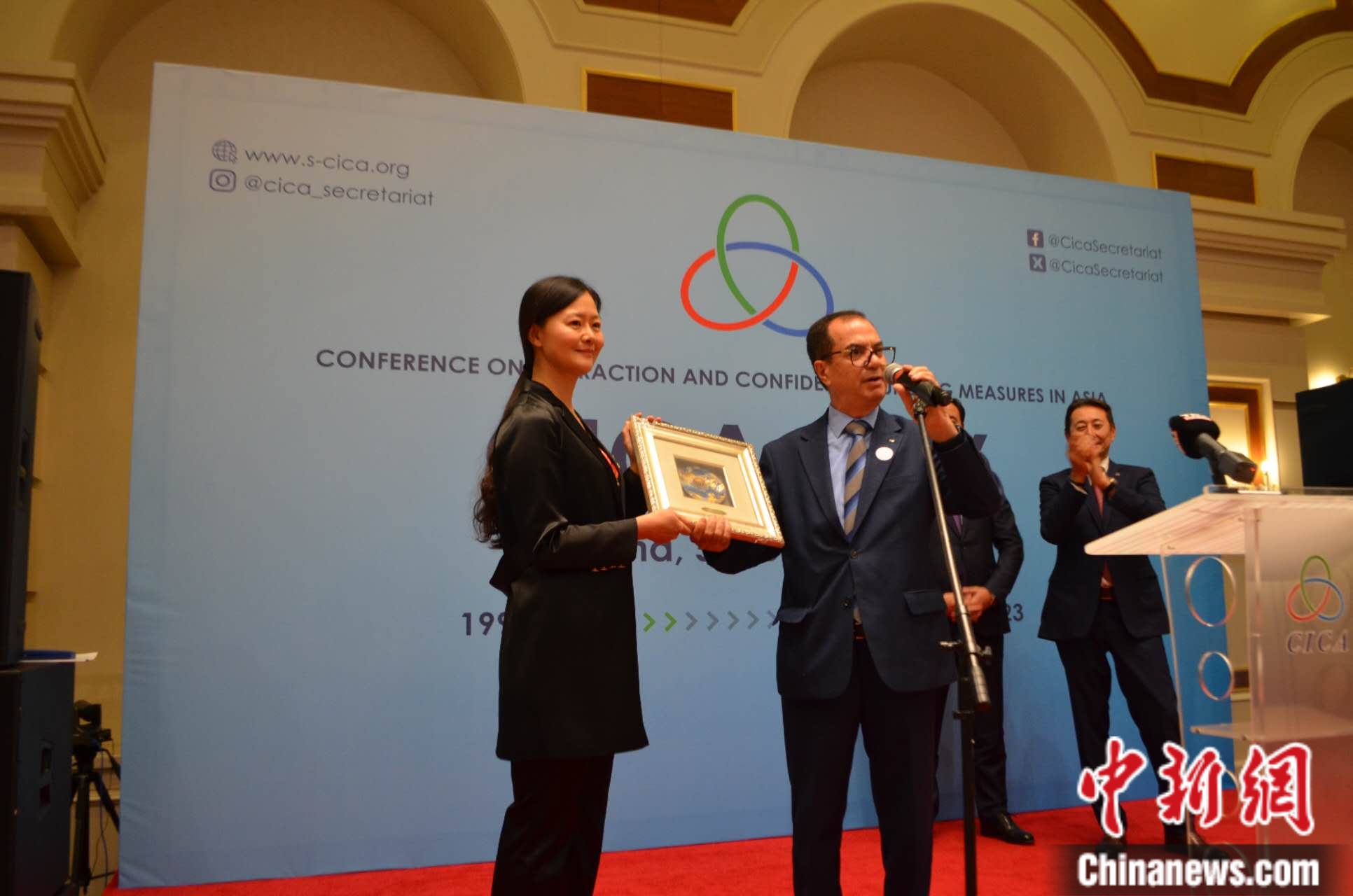 遲方在獲獎(jiǎng)致辭中向哈總統(tǒng)托卡耶夫及及亞信會(huì)議同仁表達(dá)感激之情,感謝亞信會(huì)議各成員國、觀察員國及伙伴國的積極參與支持,并感謝中方在亞信會(huì)議進(jìn)程中提供的大力支持。