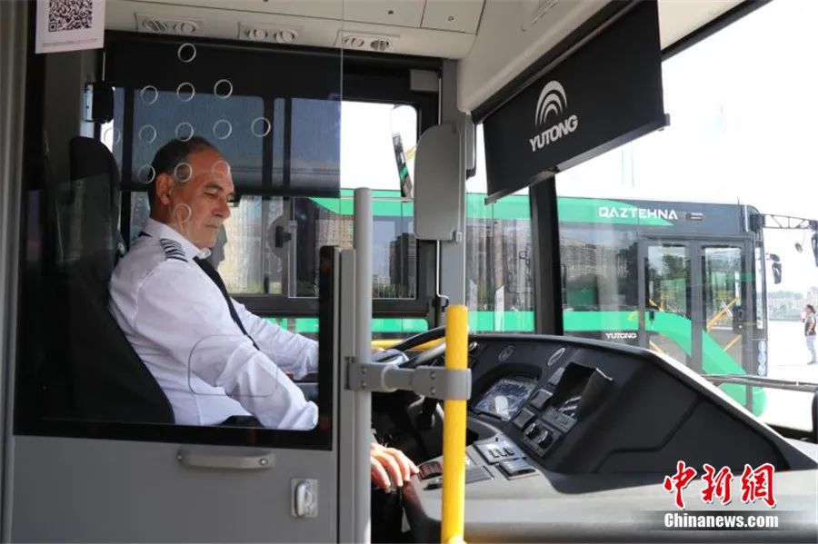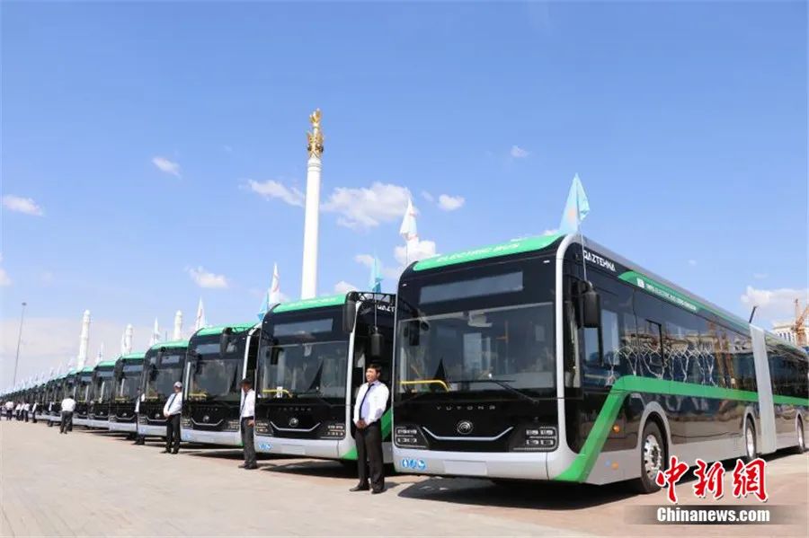 2023年7月4日,來(lái)自中國(guó)的宇通客車批量交付儀式在哈薩克斯坦首都阿斯塔納獨(dú)立廣場(chǎng)舉行。張碩 攝