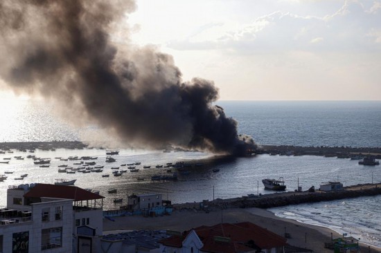 10月10日,加沙城港口遭以色列襲擊后升起濃煙。新華社發(fā)(里澤克·阿卜杜勒賈瓦德攝)