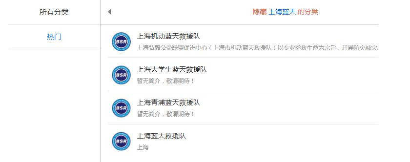 “藍(lán)天救援·中國(guó)”官網(wǎng)品牌授權(quán)隊(duì)伍查詢(xún)中,上海藍(lán)天旗下分類(lèi)有4支隊(duì)伍