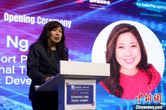 當(dāng)?shù)貢r間10月11日,加拿大多倫多,加拿大出口促進(jìn)、國際貿(mào)易和經(jīng)濟(jì)發(fā)展部長伍鳳儀在多倫多出席當(dāng)日開幕的2023秋季經(jīng)貿(mào)論壇時表示,加政府正繼續(xù)在全球各地商談、拓展貿(mào)易協(xié)議。記者 余瑞冬 攝