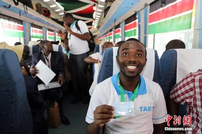 資料圖:當?shù)貢r間2017年5月31日,蒙巴薩至內(nèi)羅畢標準軌鐵路通車儀式在肯尼亞蒙巴薩舉行,期間一名旅客展示自己的車票。中新社記者 宋方燦 攝