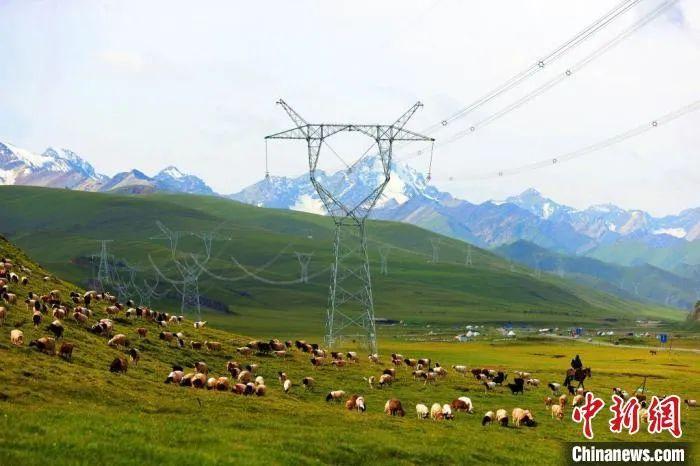 資料圖:750千伏輸電線路橫穿南疆巴音布魯克草原,環(huán)境生態(tài)和諧共生。張利民 攝
