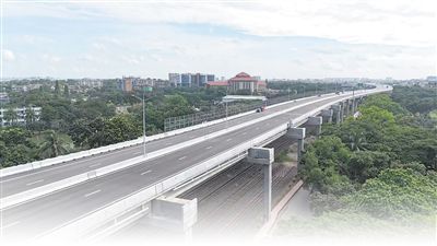 由中國(guó)山東高速集團(tuán)主導(dǎo)投資建設(shè)運(yùn)營(yíng)的孟加拉國(guó)首條高架快速路——達(dá)卡機(jī)場(chǎng)高架快速路項(xiàng)目(一期)通車儀式9月2日在孟加拉國(guó)首都達(dá)卡舉行。項(xiàng)目通車后極大改善了達(dá)卡市區(qū)交通狀況。圖為孟加拉國(guó)達(dá)卡機(jī)場(chǎng)高架快速路項(xiàng)目(一期)遠(yuǎn)景。本報(bào)記者 孫廣勇攝