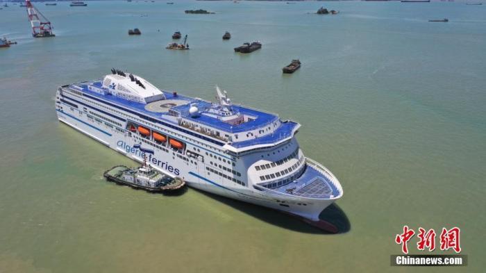 2021年7月15日,中國為阿爾及利亞建造的首艘豪華客滾船啟航。中新社發(fā) 符致冠 攝