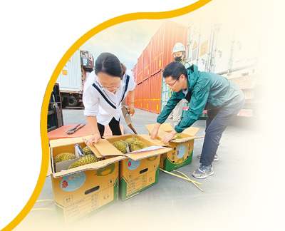 “針對水果等生鮮農(nóng)產(chǎn)品特點(diǎn),我們采取7×24小時預(yù)約通關(guān),設(shè)置農(nóng)食產(chǎn)品專用窗口,優(yōu)先辦理鮮活易腐農(nóng)產(chǎn)品接單、放行業(yè)務(wù),并采取即到即檢即放模式,確保進(jìn)口水果通關(guān)零延遲?!臂屡D海關(guān)關(guān)長韓斌說。