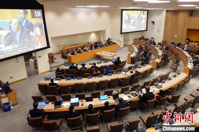張軍還代表28個(gè)國(guó)家作共同發(fā)言,揭批美西方濫施單邊強(qiáng)制措施,強(qiáng)調(diào)單邊強(qiáng)制措施違反《聯(lián)合國(guó)憲章》宗旨和原則以及國(guó)際法,有悖于多邊主義和國(guó)際關(guān)系基本準(zhǔn)則,對(duì)受制裁國(guó)家及其人民造成破壞性甚至致命后果,嚴(yán)重侵犯并剝奪了包括健康權(quán)和生命權(quán)在內(nèi)的各項(xiàng)人權(quán),呼吁立即徹底取消。