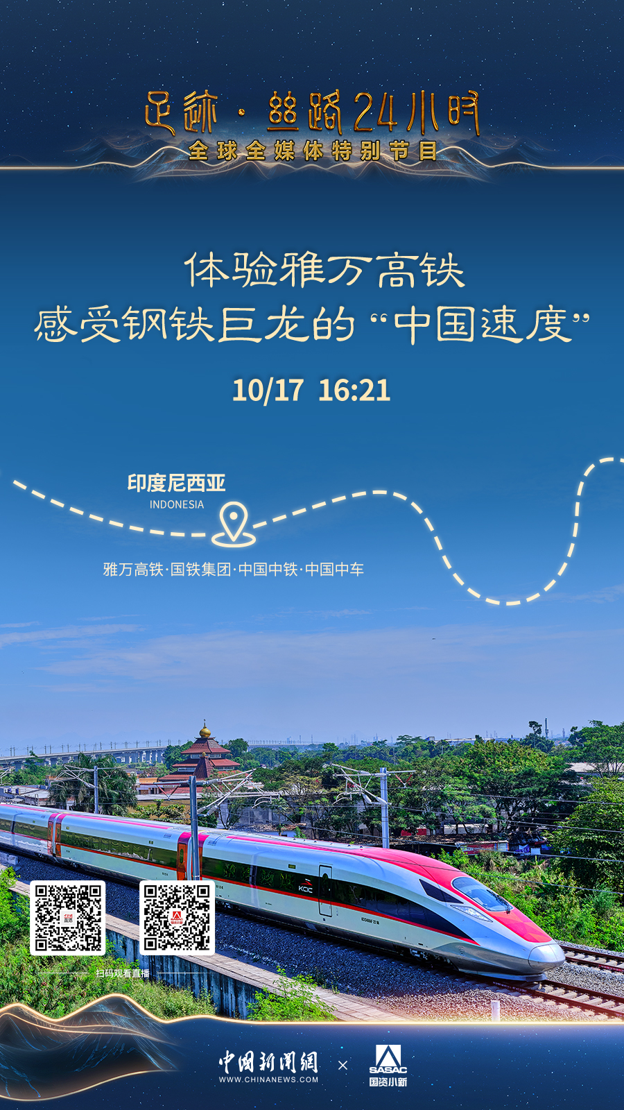 雅萬高鐵連接印尼首都雅加達和第四大城市萬隆,全長142公里,設(shè)計最高時速350公里。 “足跡·絲路24小時”全球全媒體特別節(jié)目實地探訪和體驗這條“鋼鐵巨龍”。