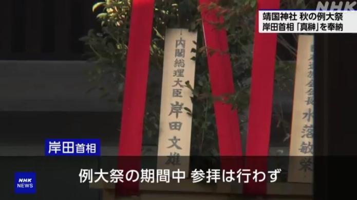 中新網(wǎng)10月17日電 據(jù)日本放送協(xié)會(huì)(NHK)報(bào)道,供奉有二戰(zhàn)甲級(jí)戰(zhàn)犯的靖國(guó)神社從10月17日開始進(jìn)行所謂的“秋季大祭”,日本首相岸田文雄一早以首相名義,供奉了名為“真榊”的祭品。