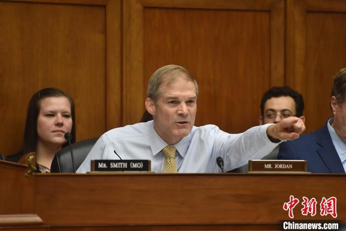 當?shù)貢r間10月13日,美國國會眾議院共和黨人就議長候選人再次進行黨內投票,眾議院司法委員會主席吉姆·喬丹獲得黨內提名。圖為喬丹今年9月在眾議院監(jiān)督和問責委員會聽證會上發(fā)言。 中新社記者 沙晗汀 攝