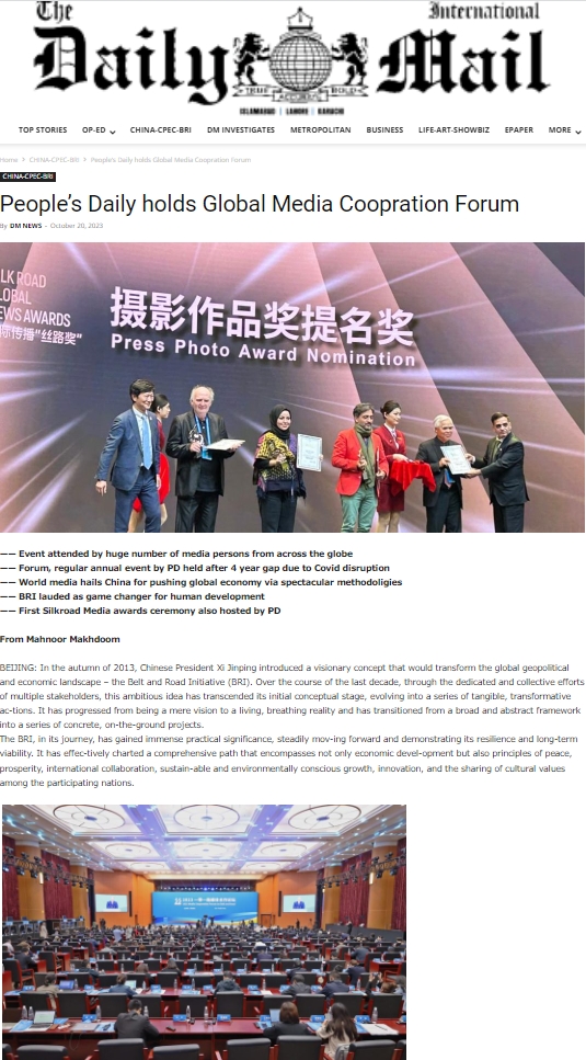 巴基斯坦《每日郵報》網(wǎng)站報道2023“一帶一路”媒體合作論壇及首屆國際傳播“絲路獎”頒獎活動