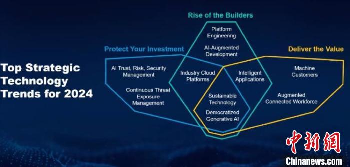 圖為高德納發(fā)布的2024年十大戰(zhàn)略技術(shù)趨勢。高德納供圖