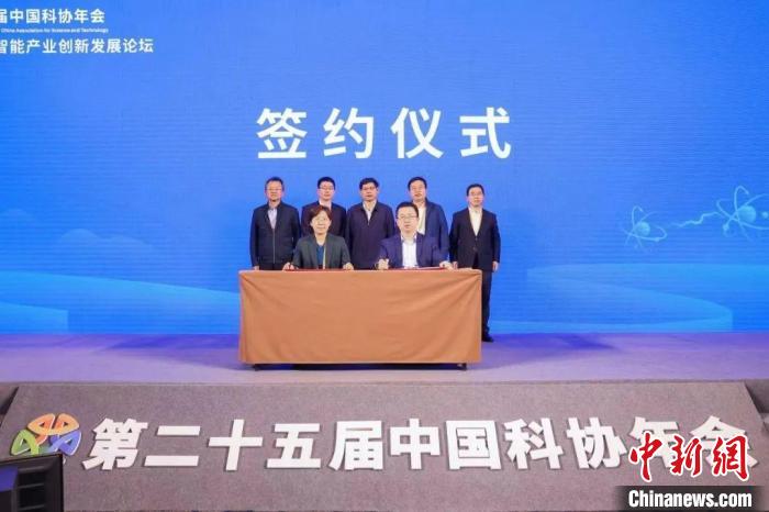 第二十五屆中國科協(xié)年會通用人工智能產(chǎn)業(yè)創(chuàng)新發(fā)展論壇上,中國自動(dòng)化學(xué)會與科大訊飛簽署戰(zhàn)略合作協(xié)議。中國科協(xié) 供圖