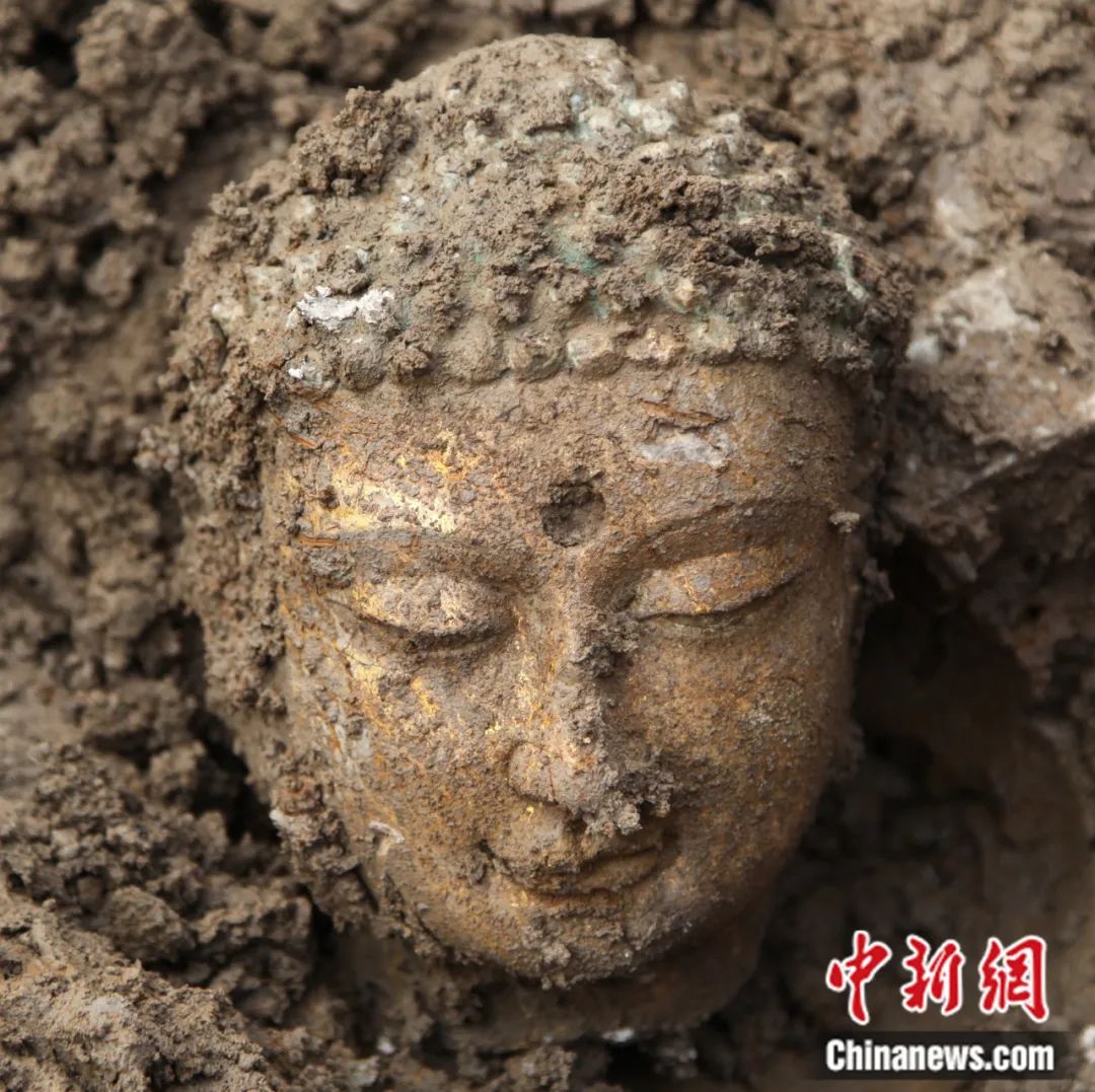 鄴城遺址東郭區(qū)佛教造像埋藏坑發(fā)掘出的佛首。鄴城考古隊供圖