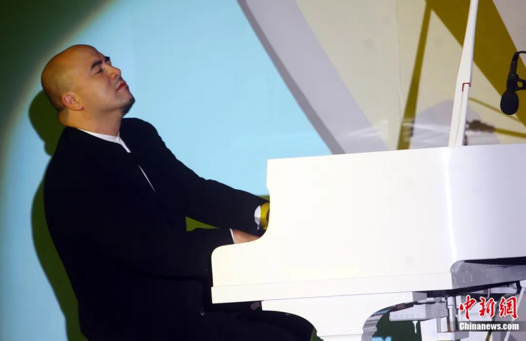 在中新社“東西問”專訪前,坐在鋼琴邊的孔祥東便來了靈感,手落樂起,黑白躍動(dòng)間,即興之作鏗錚流淌而成。