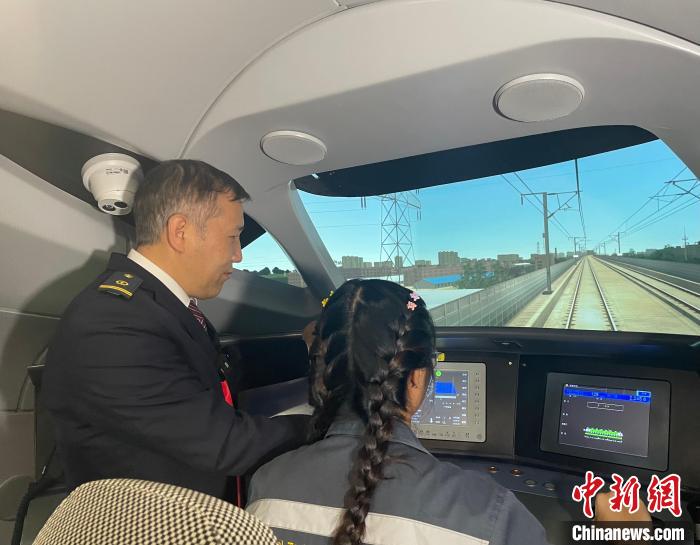 圖為泰國學(xué)員在全功能動車駕駛仿真器中體驗駕駛高鐵?!”R琪 攝