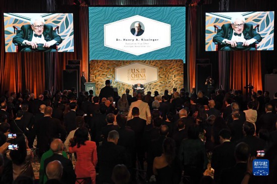 10月24日,美國前國務卿基辛格(中)出席在紐約舉行的美中關(guān)系全國委員會年度頒獎晚宴。新華社記者李睿攝
